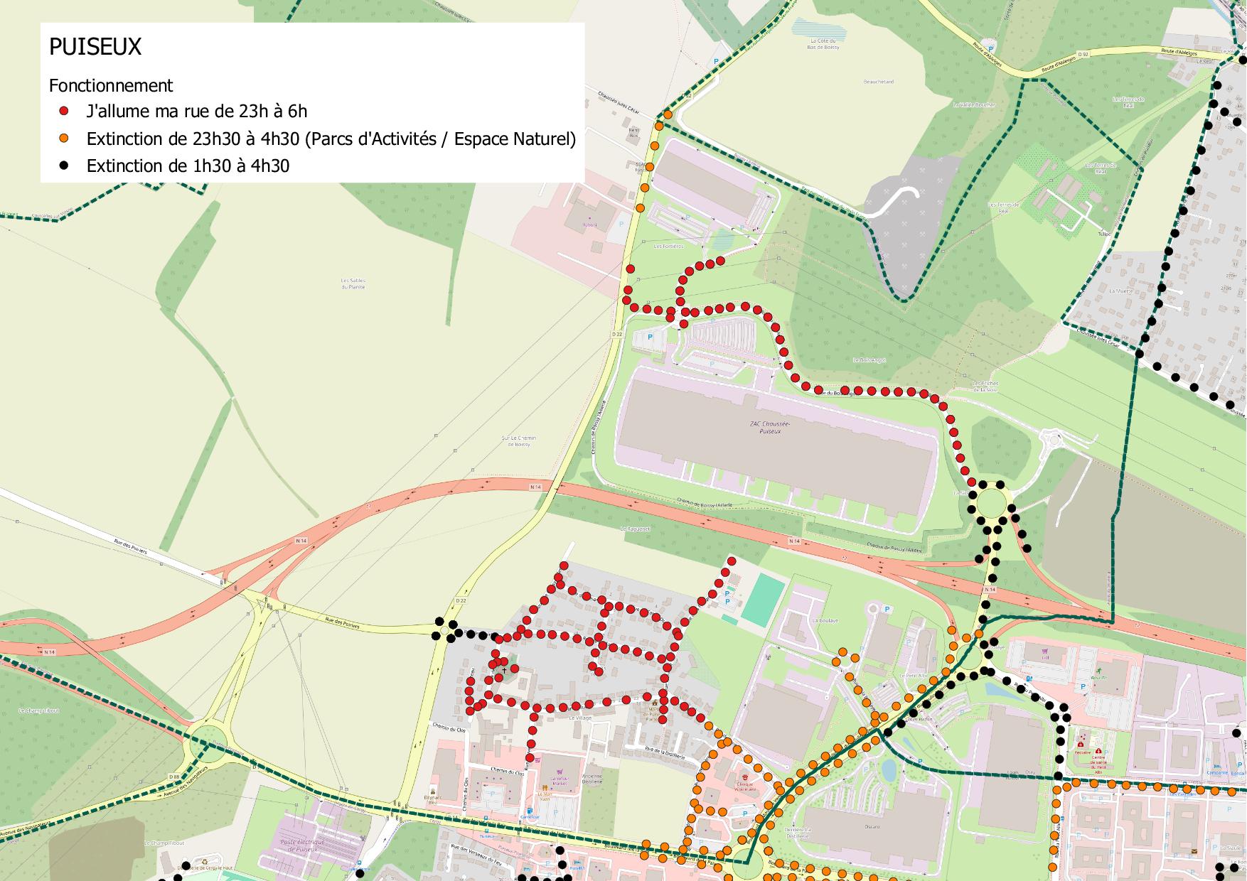 - sur les Parcs d’Activités et Espaces Naturels : extinction de 23h30 à 4h30
